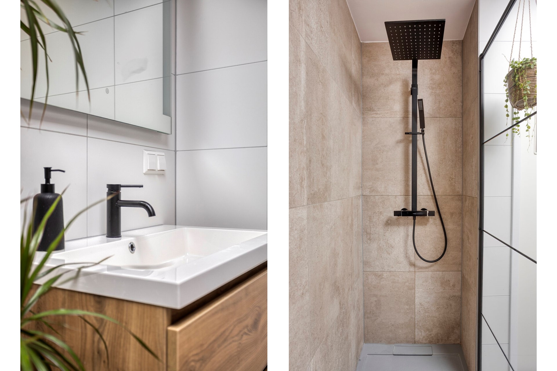 De badkamer is helemaal van nu: luxe en modern uitgevoerd met een tweede toilet, brede wastafel en een prachtige inloopdouche.